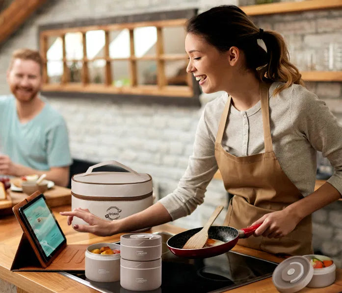Sada na jídlo obsahuje nádoby různých velikostí pro skladování potravin a umožňuje vám vzít si domácí oběd kamkoli s sebou, ať už do práce nebo na výlet.